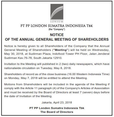 Proxy to Attend the AGMS of PT PP London Sumatra Indonesia Tbk |